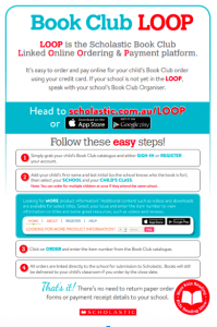 The Book Club LOOP platform for parents allows purchases to be paid by credit card from home. The student’s order is submitted directly to school and the books are delivered to class. Student orders can be placed at scholastic.com.au/LOOP or using the LOOP app, which can be downloaded from the App Store or Google Play.